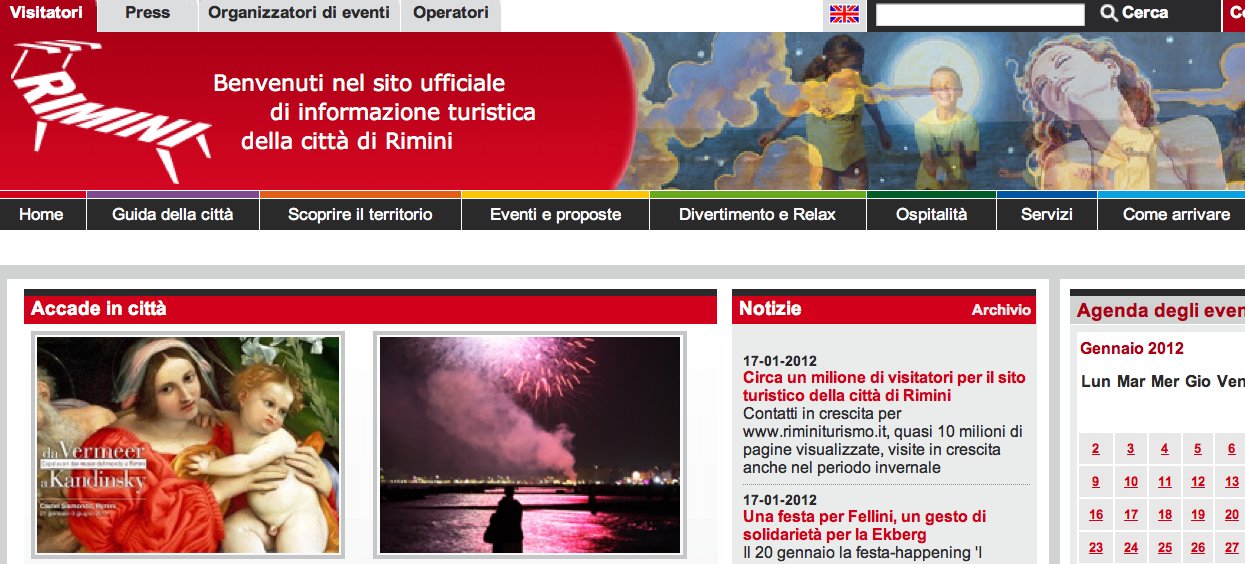 Finito il 2011 iniziano i bilanci delle varie attività. Ed è tempo anche di verificare il successo di un sito Internet molto importante per la promozione della città di Rimini. Si tratta di www.riminiturismo.it, il sito ufficiale di informazione turistica della città romagnola, gestito direttamente dall’Assessorato al Turismo del Comune di Rimini.